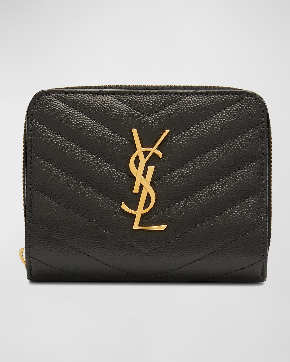 Saint Laurent Stud Leather YSL Zip Compact Wallet Neiman Marcus